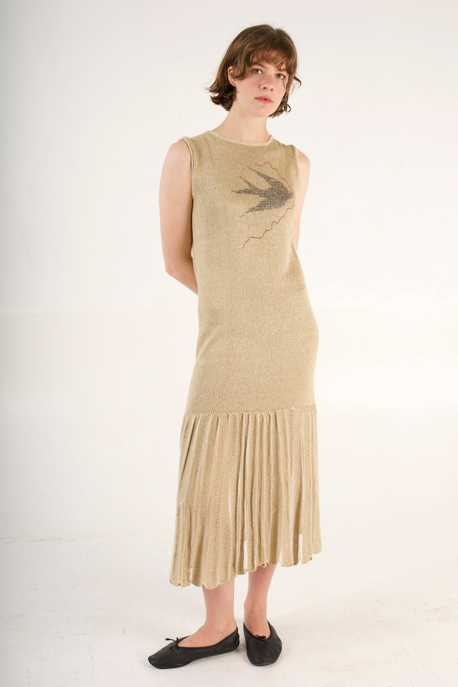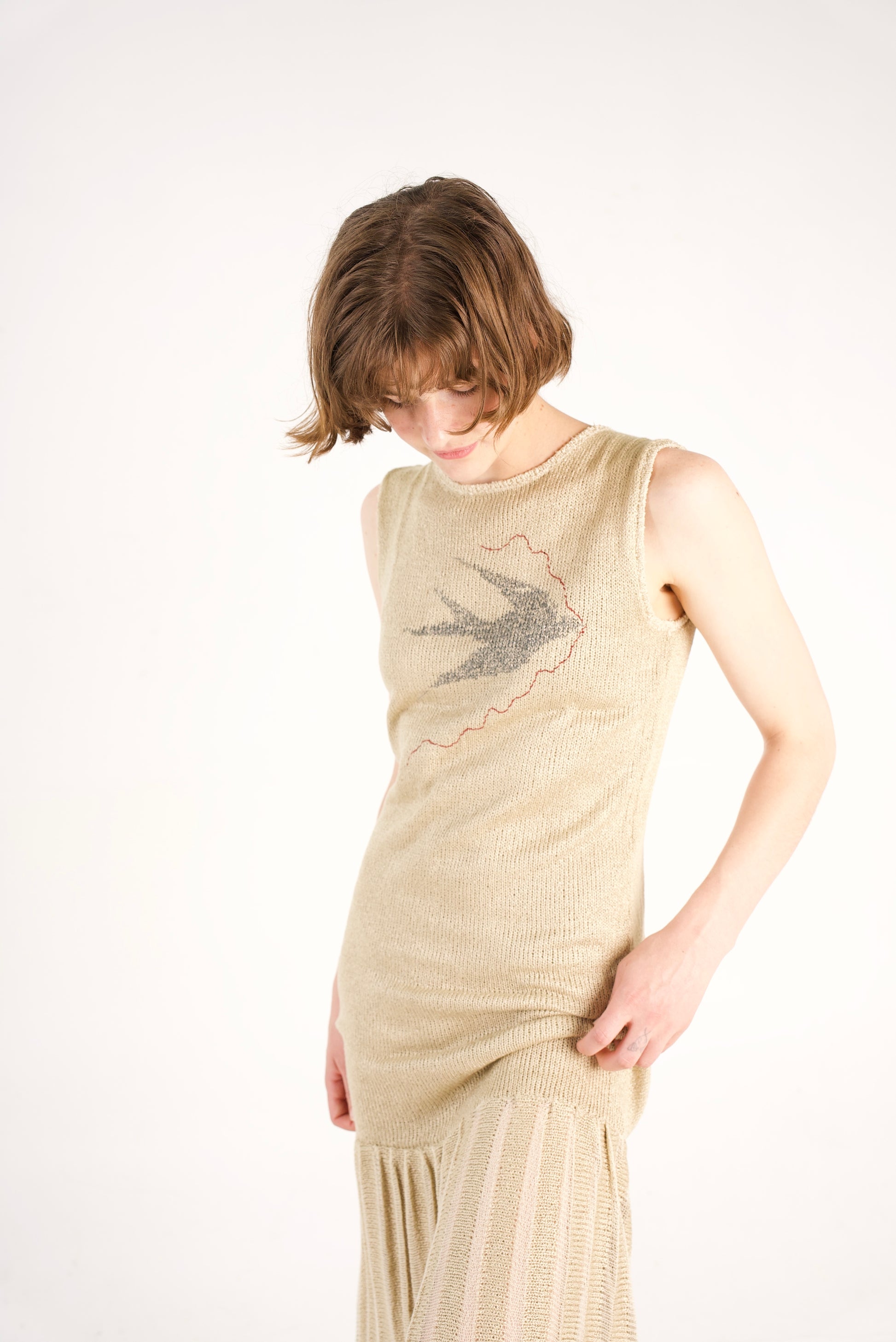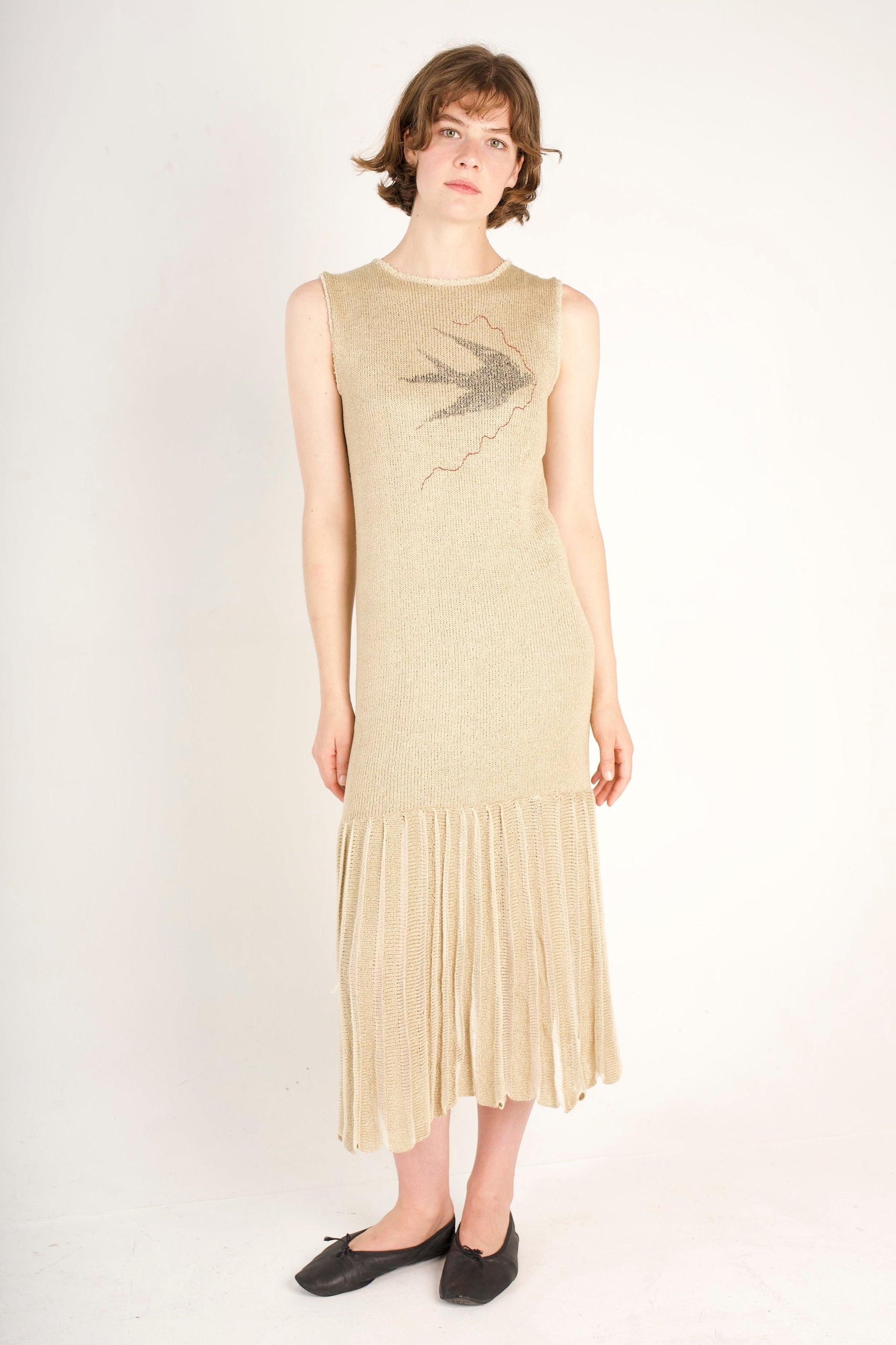 100% Rayon slip with hand embroidered swallow bird detailing. Handmade in New York.